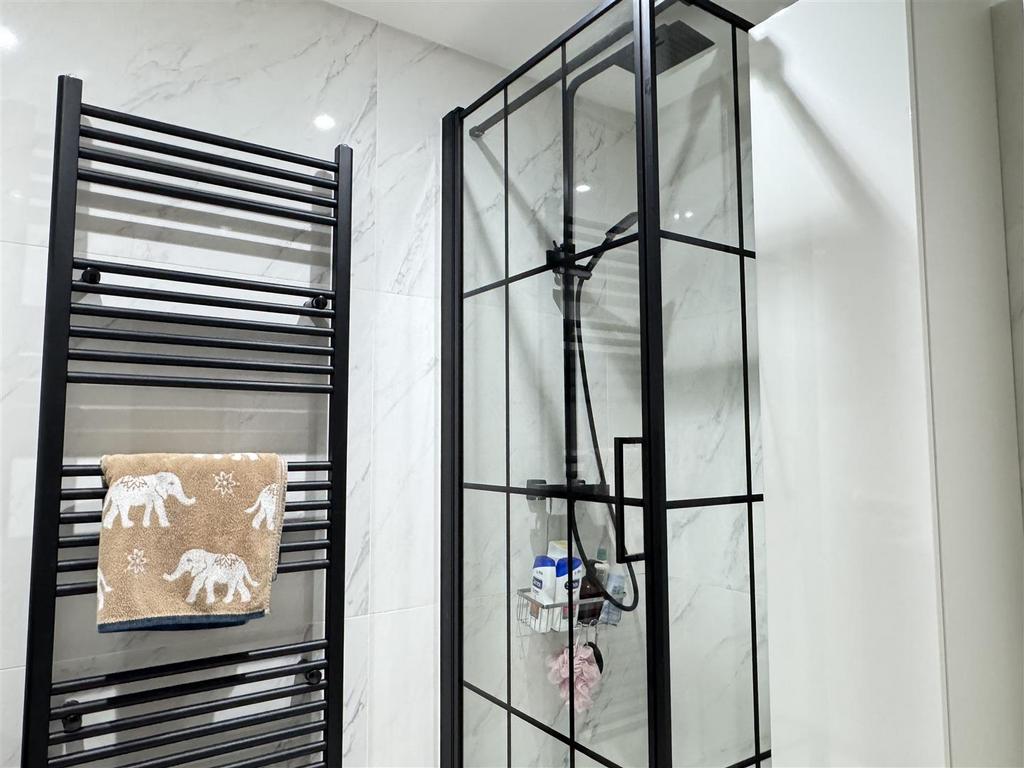 Shower Room - 2.71 x 1.38 - max (8'10" x 4'6" - max) - A refitted shower with stylish suite comprising shower cubicle, wash basin with vanity unit under, concealed WC with dual flush technology, radiator. Inset ceiling spotlights. fully tiled walls and floor. Modern extractor fan.