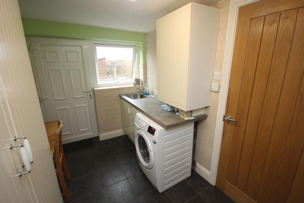 UTILITY ROOM 11’ 0” x 7’ 3” (3.35m x 2.21m) tiled floor, part-tiled walls, fitted wall & floor units, power & light, stainless steel sink, plumbing for washing machine, cupboard housing ‘Logic’ combi. boiler (serviced annually) & uPVC double glazed window and door.
