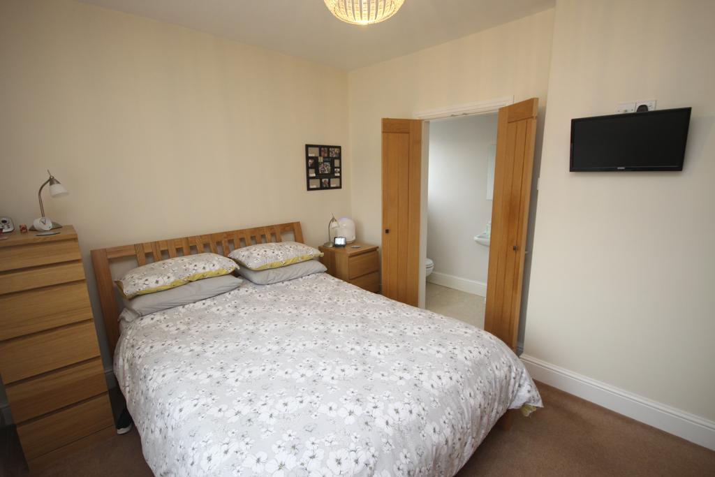 No. 1 12’ 8” x 9’ 4” (3.86m x 2.84m) fitted wardrobes, radiator, uPVC double glazed window with vertical louvred blind & double-opening doors to en-suite shower room.