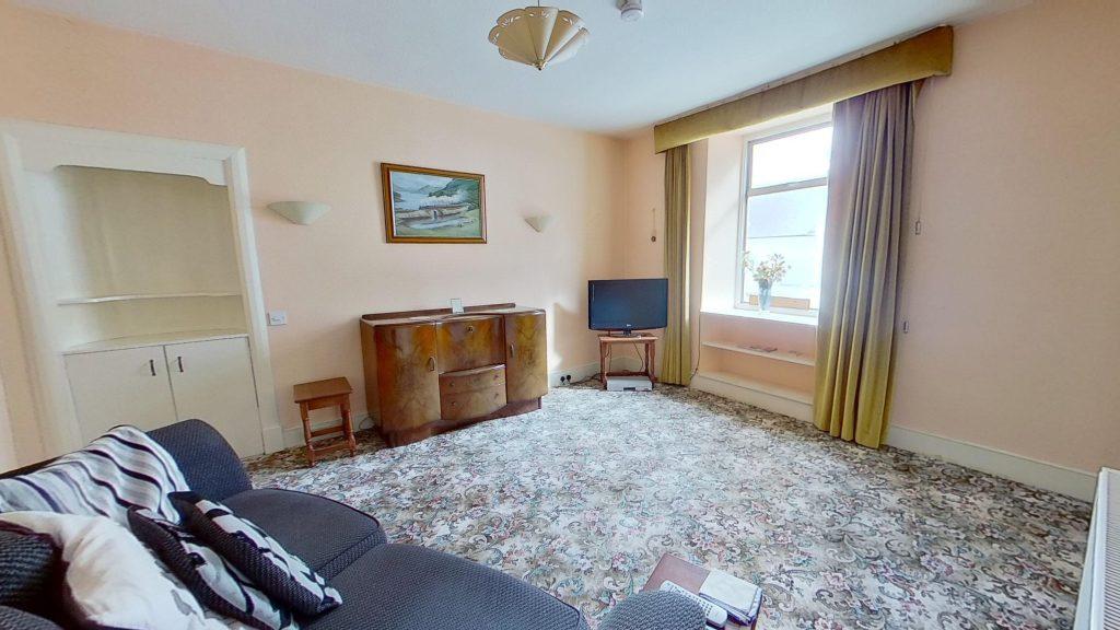 Front facing well-proportioned room with a feature original shelved alcove and laid with carpet.