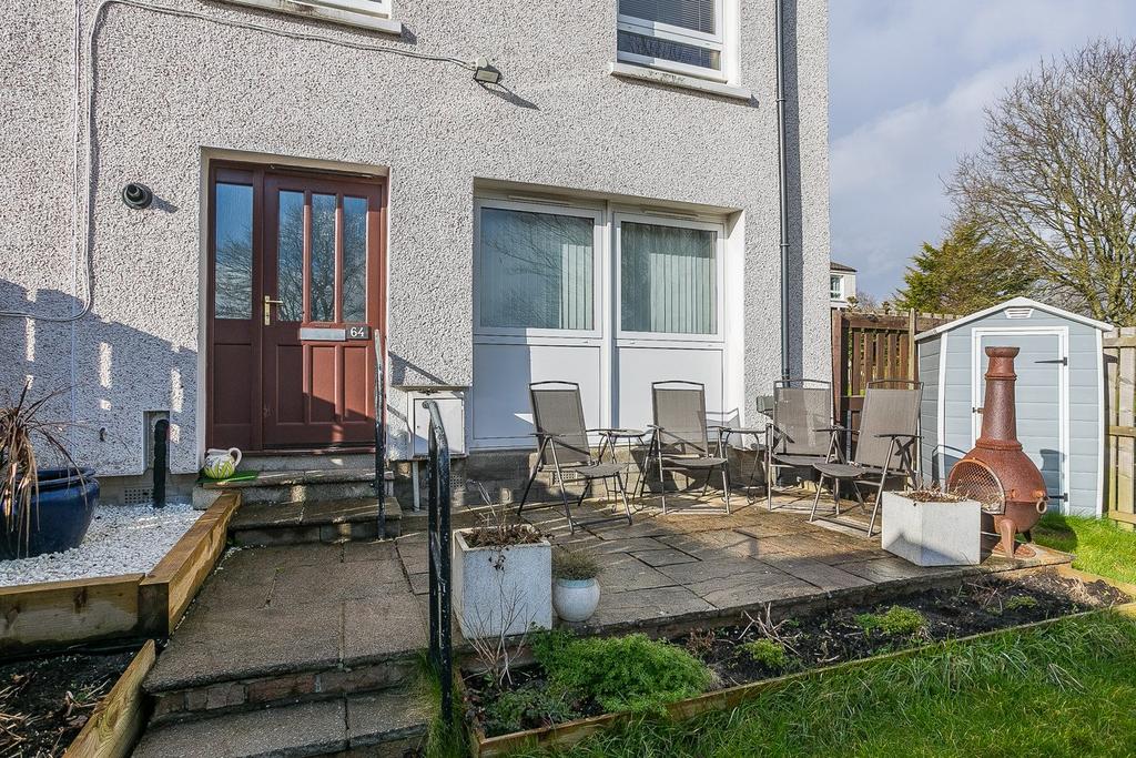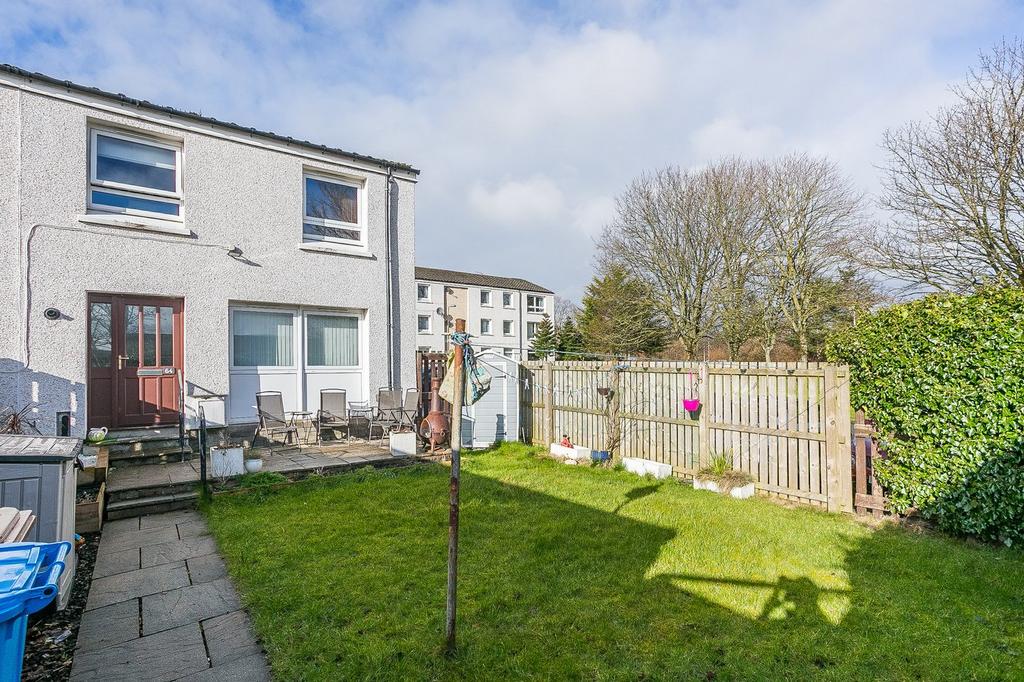 Tastefully presented and spacious, three bedroom, south-facing, end-terrace family home with a private garden. Set off street, with a corner plot surrounded by shared green spaces, located in a quiet and established residential area of Livingston, West Lothian. A welcoming vestibule has built-in cloakwear space and opens to the main hallway, providing access to the carpeted stairs and throughout the ground floor. A bright and generous front-facing living room is open to the rear dining area, which has a built-in cupboard and a secondary door leading to the kitchen. A good-sized kitchen is set to the rear, with wood-effect units, stone-effect worktops, a composite sink with a drainer, a tiled splashback, an integrated fridge and separate freezer, an integrated dishwasher, and a freestanding washing machine and cooker with a gas hob. Upstairs, three double bedrooms provide excellent space, each benefiting from built-in mirrored wardrobes. Completing the accommodation, set to the rear, the shower room is fitted with a modern suite, complete with a large walk-in mains shower, spotlighting, tiled splash walls, and a ladder-style radiator.