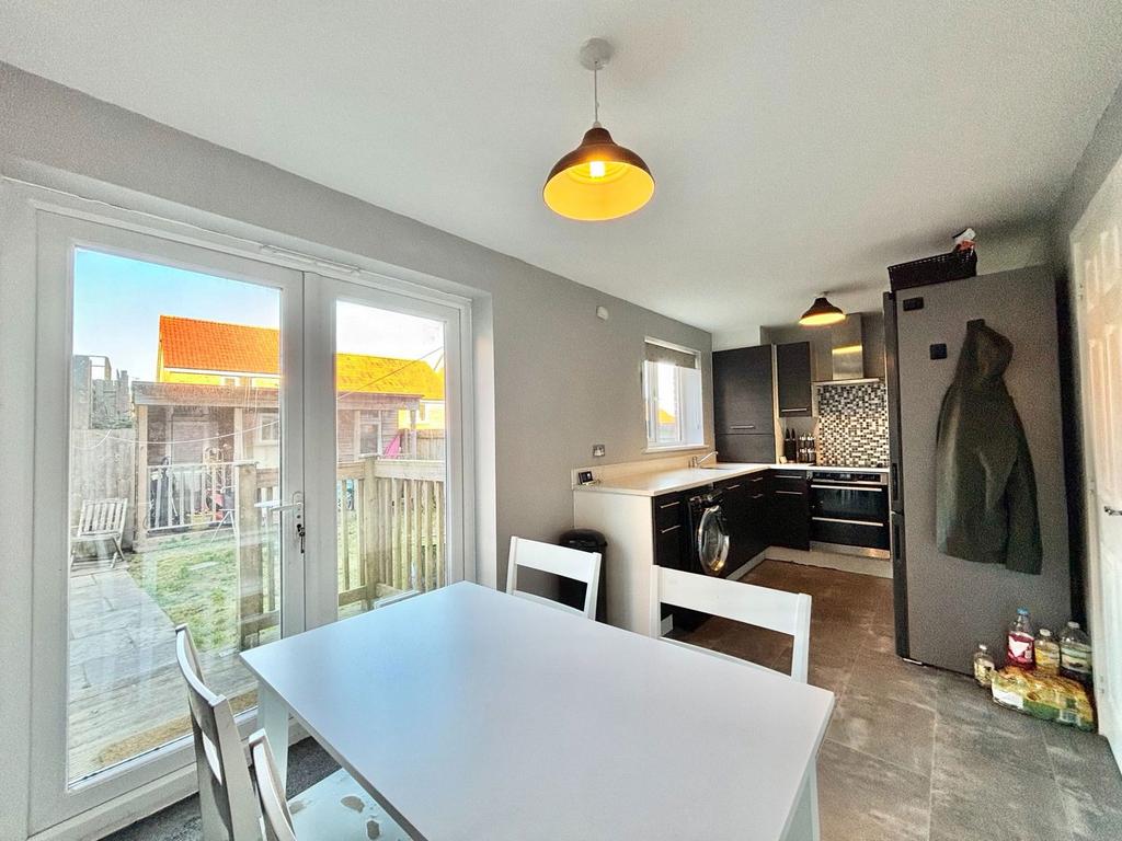 KITCHEN/DINER - 5.66m x 2.54m (18'7" x 8'4") A modern kitchen/diner boasting a range of overhead, base and drawer units with quartz work surfaces above. A 1 1/2 bowl stainless steel sink and drainer unit, an electric single oven with grill integrated and a four ring induction hob with extractor hood above. Space and plumbing for a washing machine and fridge freezer. Space for a 4/6 seater dining table, ideal combination boiler, uPVC double glazed window and a uPVC double glazed French doors opening out to the gardens.
