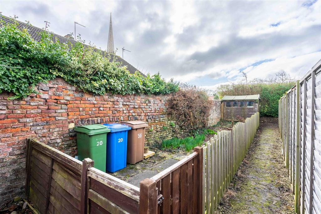 Garden - A shared pathway leads down the side of the property and provides a right of way for the neighbouring properties. A gate opens through to a fenced off section of garden with a paved patio area and wooden storage shed.