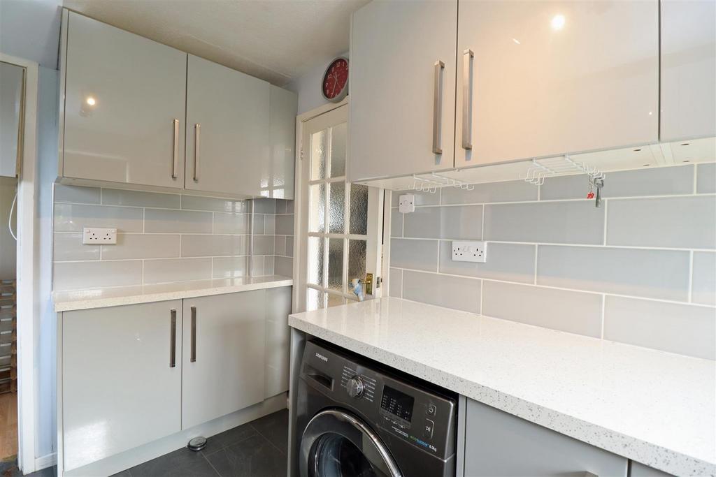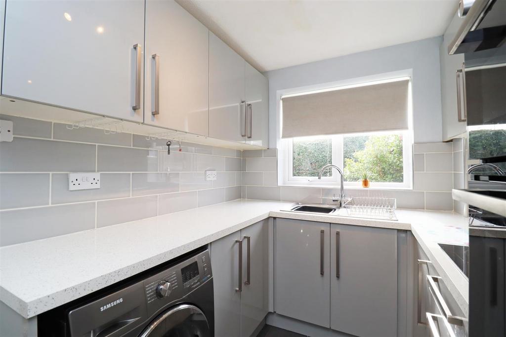 The ground floor features a hall leading to a spacious lounge/dining room with sliding doors opening to the rear garden, along with a lovely side garden room enjoying a sunny aspect. The contemporary kitchen features sleek high-gloss units and integrated appliances, including a Bosch double oven (new in 2023), Neff induction hob, extractor, and space for a washing machine. Upstairs, there are three well-proportioned bedrooms and a modern shower room.