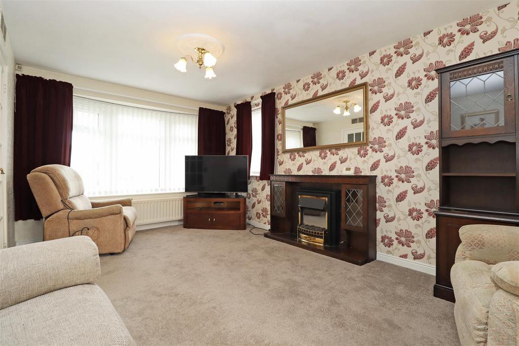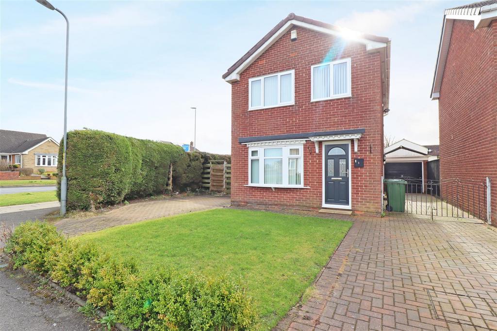 Outside, the front garden is lawned, with two block paved driveways providing ample off-road parking, one leading to the detached garage at the rear. The south-facing rear garden features a lawn and patio area.