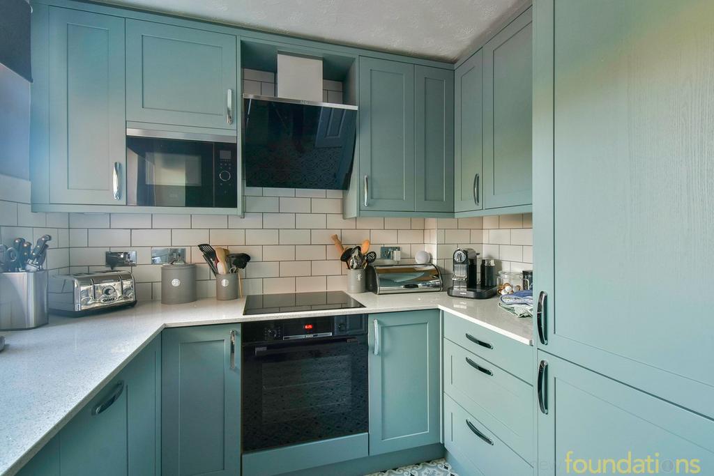 8' 9" x 7' 10" (2.67m x 2.39m) Double glazed window to the rear, a fully re-fitted kitchen comprising; a range of quartz working surfaces with inset sink unit and mixer tap, inset four ring electric AEG induction hob with extractor fan over, a range of matching wall and case cupboards with fitted drawers, built-in appliances including; fridge/freezer, dishwasher, microwave, electric oven and washing machine, tiled splashback.