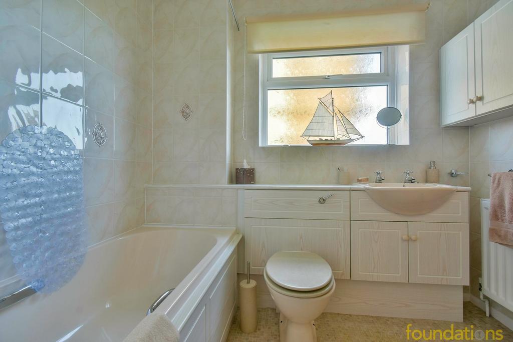 7' 4" x 6' 6" (2.24m x 1.98m) Double glazed frosted glass window to the side, a fitted three piece suite comprising; panelled bath with electric shower over, low level WC with concealed cistern, wash hand basin with cupboard under, radiator, shaver point.