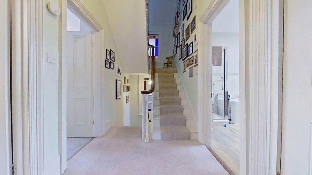As you approach the property, you are greeted with a traditional Victorian tiled pathway, up the stone steps to the wooden double front door entering an internal lobby. A further wood and glazed door opens to the entrance hall and stairs to first floor. To the left are the two principal reception rooms, both of which have bay windows that bathe both rooms in natural light. There are original fireplaces in both rooms as well as a wooden access door between them. To the right of the entrance hall is a large and extended reception room that is currently used as a substantial office. This room enjoys French doors directly to the garden, bay window to the front, as well as a roof lantern allowing natural light into the room. As you follow through the entrance hall there is access down to the generously sized cellar. The final ground floor room is the large kitchen/breakfast room which has also been extended and includes a generous roof lantern. There are various integrated appliances and ample work surfaces. French doors open, from this room leading to a patio seating area and the garden.