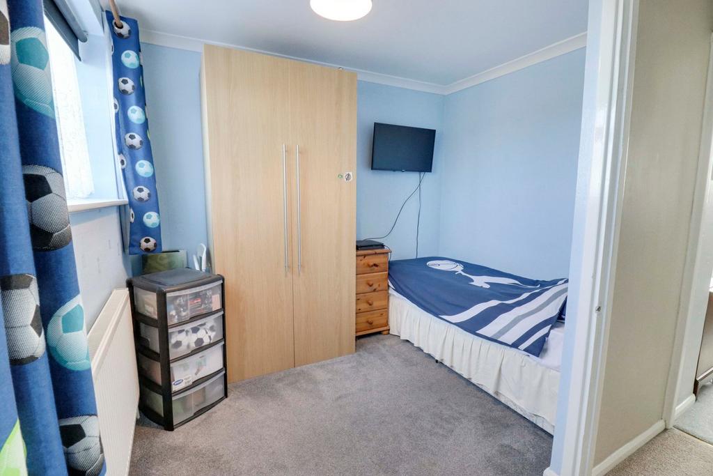 This three bedroom home backing on to open fields benefits from a large sitting/dining room, impressive kitchen, three good size bedrooms and a main family bathroom. It is double glazed, has gas fired heating through and a 35’ rear garden backing onto open fields. There is casual parking to the front of the property.