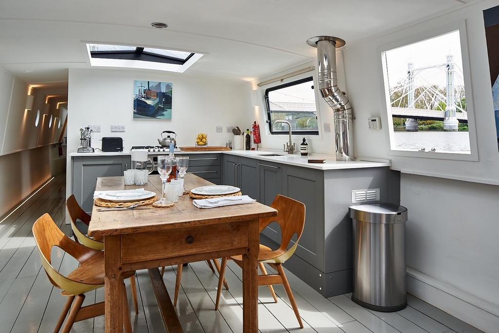 Located on a prime mooring at Cadogan Pier, Chelsea, London, this boat provides uninterrupted views up and down the river from both the front and rear decks, as well as equally great views internally from all rooms. The mooring is amongst London’s most prestigious and is in easy reach of the restaurants, shops, and public transport of Chelsea, making it a perfect pied-à-terre in Central London.