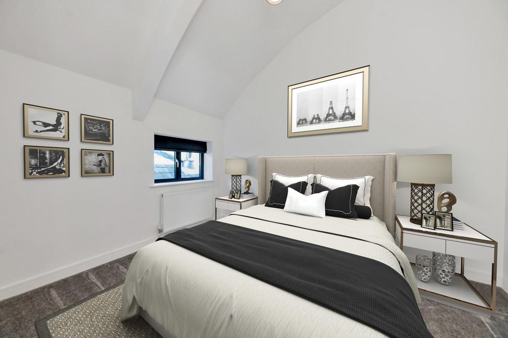 Through to the rest of the sleeping quarters, this lovely home continues to impress, with a further large double bedroom, and a beautiful family bathroom, fully tiled with vaulted ceilings and comprising a shower, a bathroom, a WC, a hand wash basin, and a heated towel rail.
