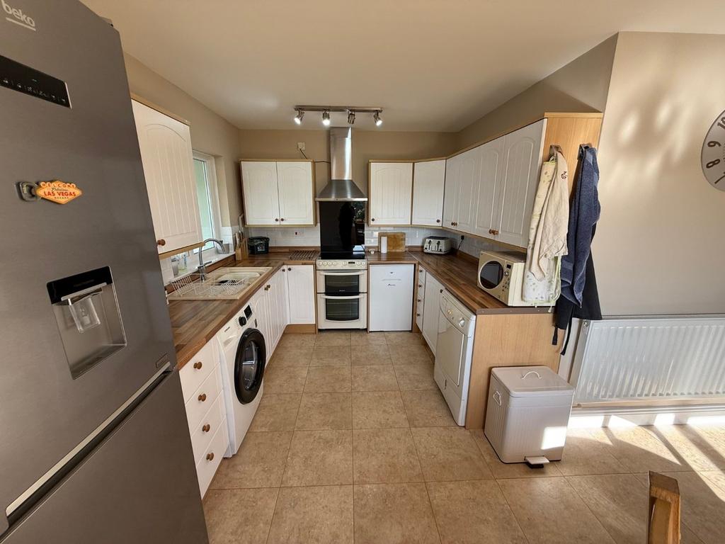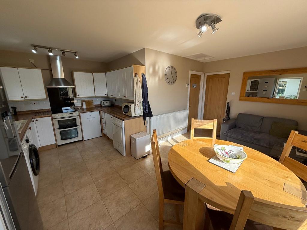 17' 4" x 17' 0" (5.28m x 5.18m) (max) With a range of white base and wall cupboard units, Formica working surfaces above, Hotpoint electric over and grill, 4 ring ceramic hobs above, stainless steel extractor hood, tiled splash back, 1½ inset drainer sink, space for tall fridge freezer, plumbing for automatic washing machine and space for tumble dryer, new Worcester combi boiler installed in 2024, central heating radiator, double glazed windows to rear and side, tiled flooring, access hatch to loft, half glazed uPVC door to rear.