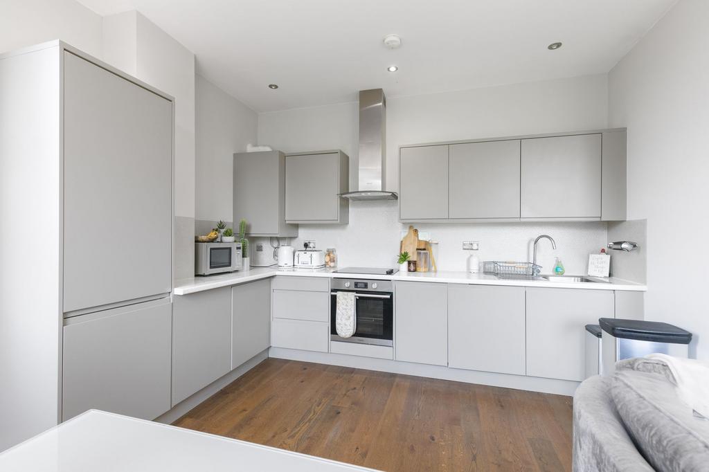 Continuing on into the open plan living accommodation there is an immaculate kitchen area which comprises of numerous contemporary wall and base units with roll top work surfaces over, stainless steel sink, integrated washing machine, dishwasher, fridge/freezer, gas oven with induction hob and extractor hood over. There is also ample of space within the open plan living accommodation for a four+ person dining room table, multiple large family sofas and any freestanding furniture you may wish. There are also two large windows overlooking the front aspect giving a bright and airy feel to the flat. Heading into the bathroom which is fully tiled, comprises of a full length panelled bath with shower unit over, low level WC, wash hand basin within vanity unit, extractor fan and a full sized feature mirrored wall completing the room.
