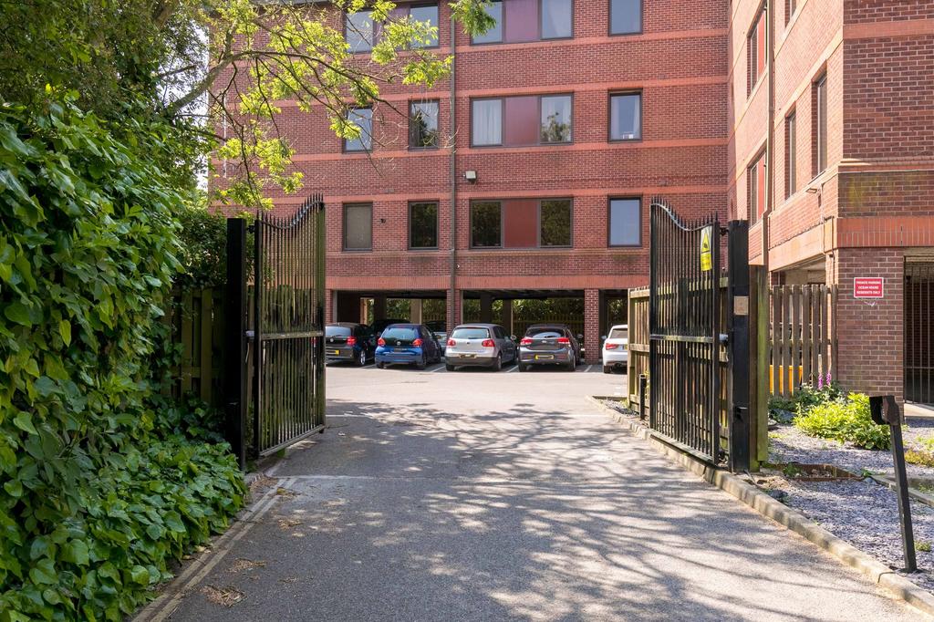 Heading outside the property, you will find the communal parking area which is distributed across all the flats and is accessed via electric gates toward the rear of the block.