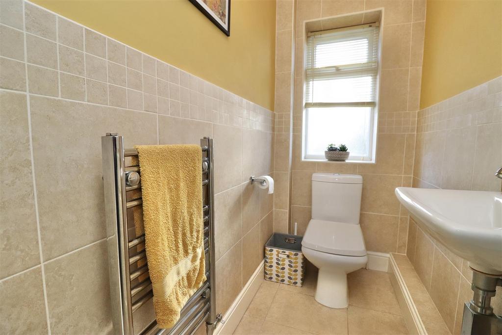 Cloakroom/Wc - 1.05m x 2.36m (3'5" x 7'8" ) - Fitted suite comprising low level WC, hand basin, chrome radiator and opaque double glazed window to side elevation.