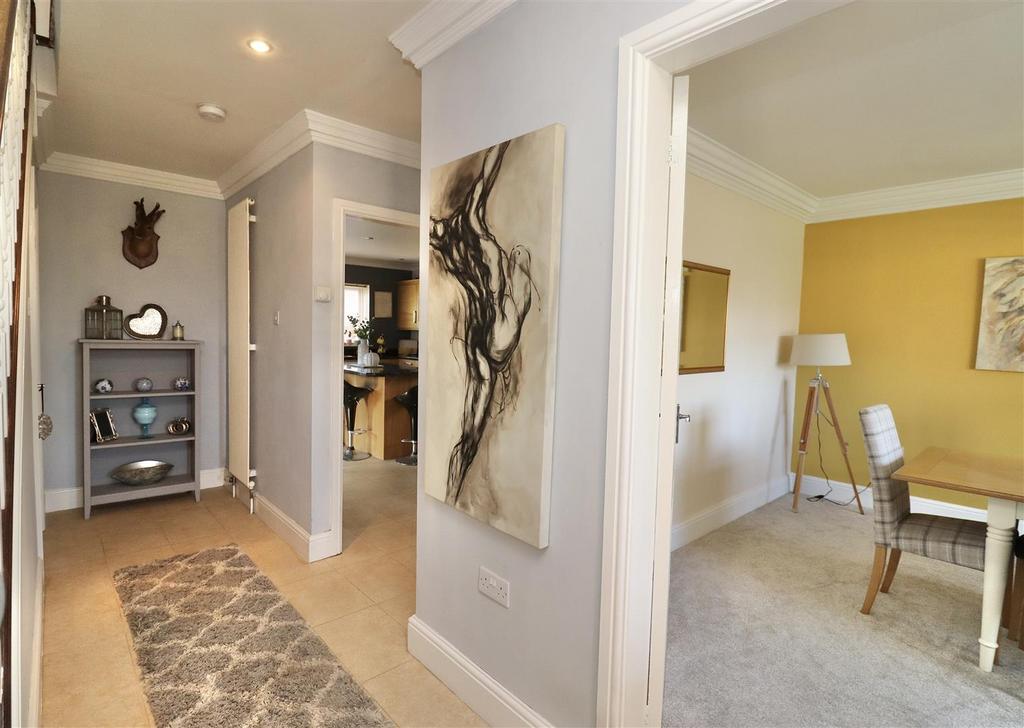 Entrance Hall - 2.06m x 6.29m (6'9" x 20'7" ) - Entered via composite front entrance door with opaque double glazed windows to either side, having stairs to the first floor accommodation with under stairs cupboard, coving to ceiling, tiled flooring and designer radiator.