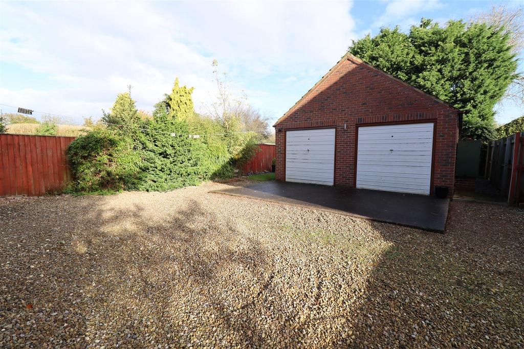 Outside - The property is set back from the Main Street, with gravelled driveway and turning area, This driveway continues to the rear of the property where there is a brick built double garage and further parking for numerous vehicles including room for a motorhome or large caravan. The gardens are mainly laid to lawn with flower and shrub borders.