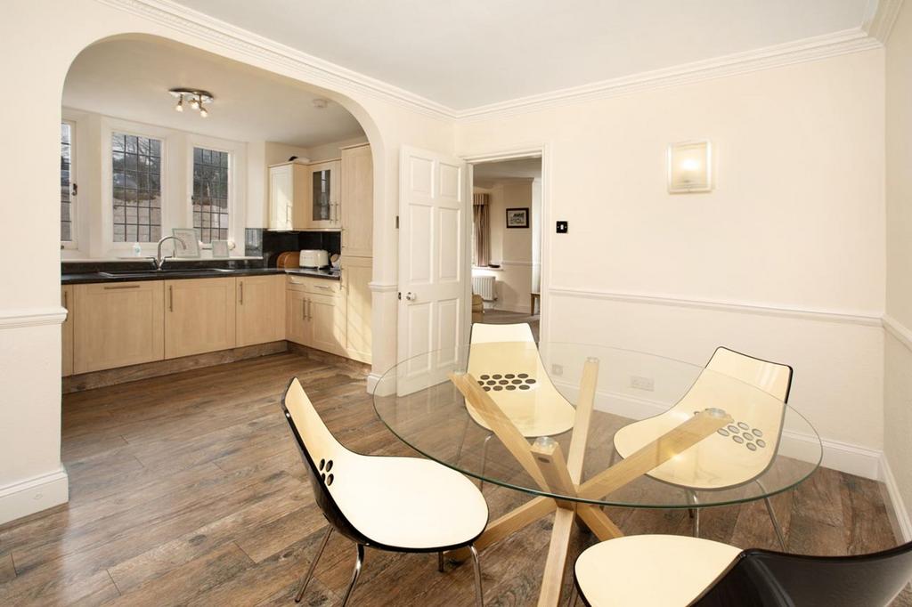 A beautiful welcoming space with cornices to the ceiling, wall lights and turning stairs with feature timber-work rise to the upper floor. Space for sofa bed if required. There is a front facing leaded light window overlooking the courtyard and a doorway opens to an….