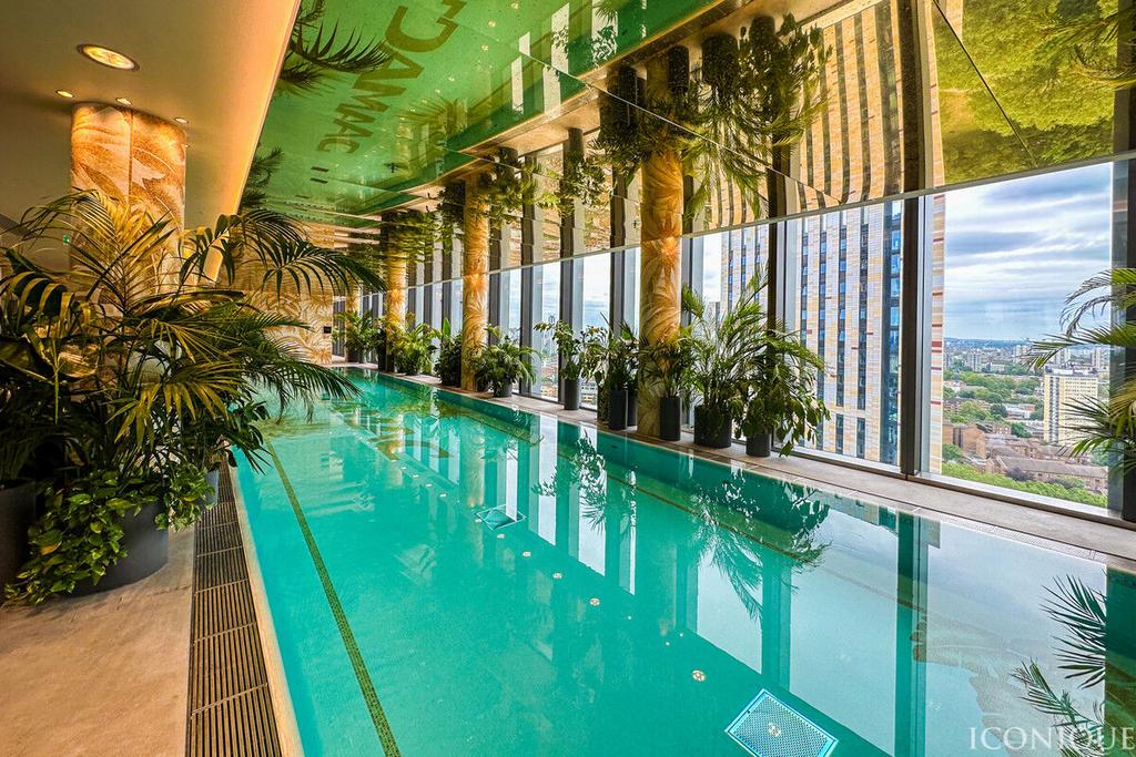 Indulge in the luxurious amenities and facilities that enhance your everyday life. The indoor swimming pool and Jacuzzi offer a serene escape, while the state-of-the-art gymnasium equipped with TechnoGym Key Training allows you to rejuvenate your body and mind. The expansive communal gardens spanning over 8,010 square feet provide a tranquil retreat. The children's play area ensures that young residents are always entertained, while secure parking, bicycle spaces, and storage facilities offer convenience and peace of mind. Additionally, DAMAC Tower Nine Elms features a private cinema room adorned with plush Versace Home detailing, offering an intimate and luxurious viewing experience.