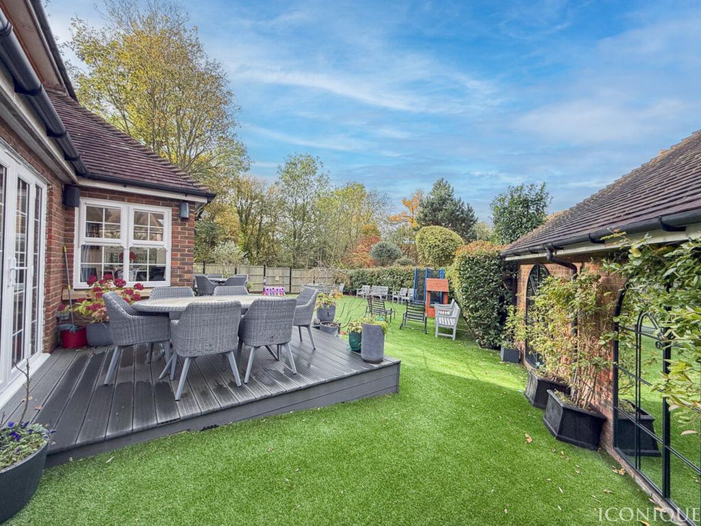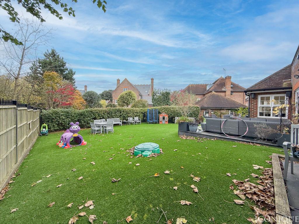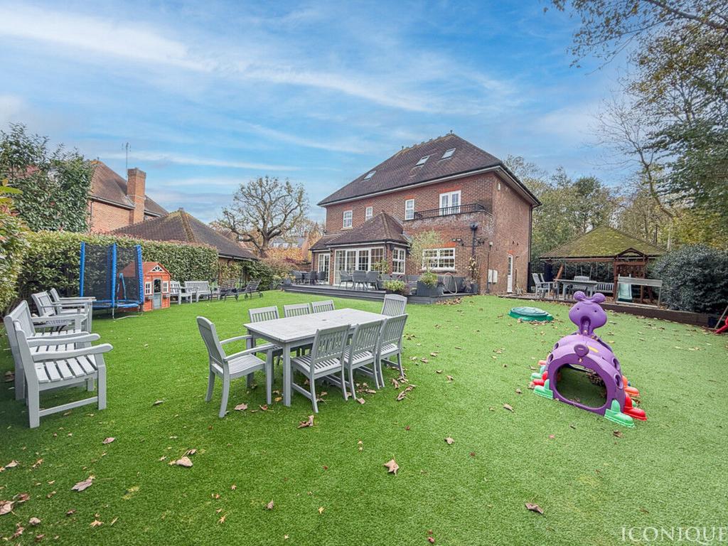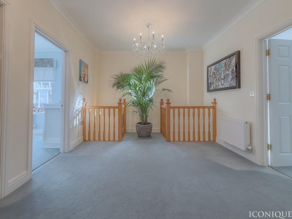 Upstairs, five generously proportioned bedrooms include a stunning principal suite with a walk-in wardrobe and an elegant en-suite bathroom. The remaining bedrooms are bright and airy, serviced by a family bathroom, all finished to an impeccable standard.