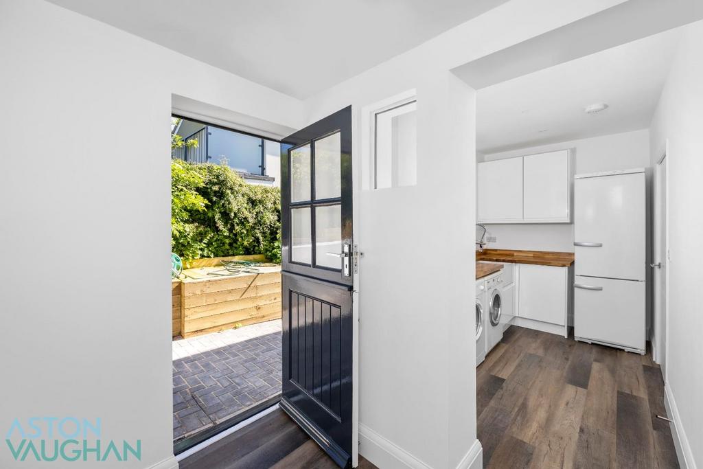 Reception Rooms: - Stepping inside, it is immediately clear this home has been renovated by those with an eye for contemporary interiors. The light has been maximised throughout with glazed bifold doors on both sides to link the house with its gardens which become an extension of the home during summer. Dark wood parquet flooring is paired with white walls to suit all modern furnishing schemes, while the second reception feels homely with soft carpet underfoot. There is space in either reception room for comfortable furnishings or formal dining, although there is space to eat in the kitchen which links through to the lounge via glazed pocket-sliding doors.
