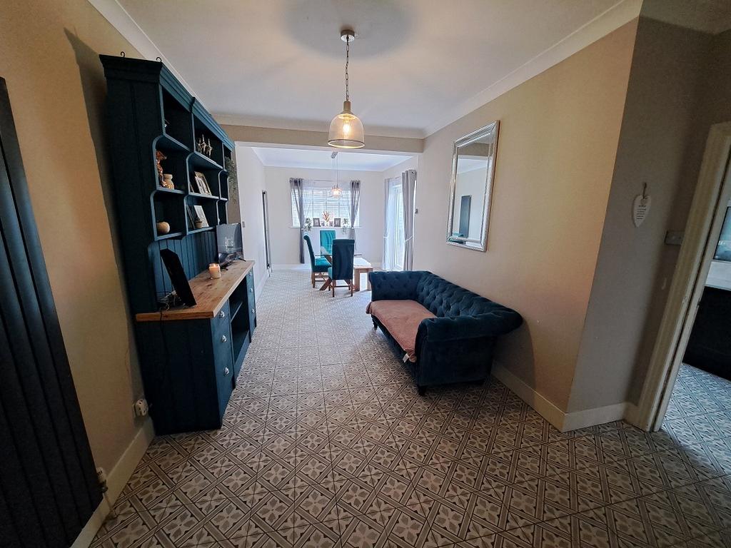 Coved ceiling. Two ceiling lights. Two tall wall mounted flat panel designer radiators. Attractive tiled floor. BT point. Double aspect with a UPVC double glazed window to the rear and UPVC double glazed French Doors at the side which lead out to the rear garden.