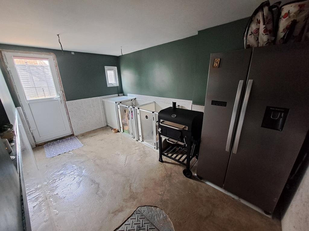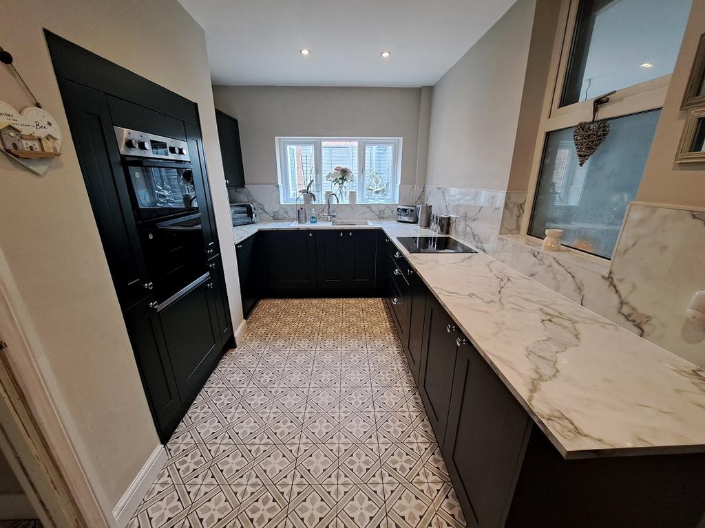 Ample space for a double door American style fridge / freezer. Further appliance spaces. UPVC double glazed window. UPVC double glazed door to the rear garden.
