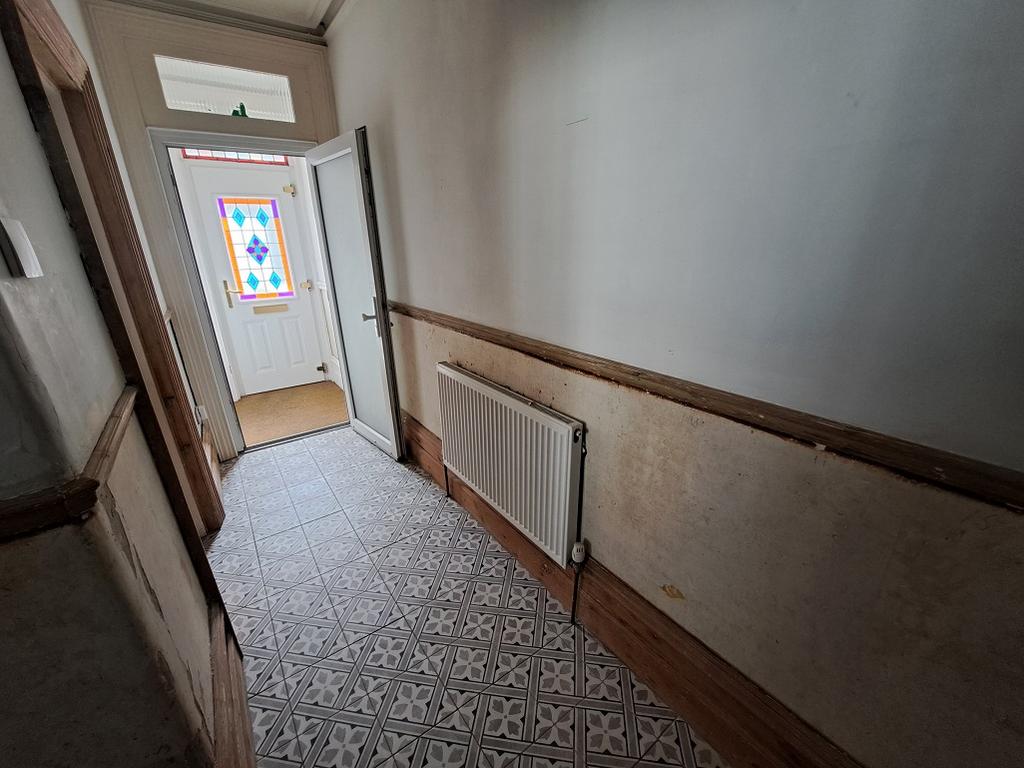 Dado rail. Ornate coving. Picture rail. Original leaded light coloured glass window above the front door. UPVC double glazed inner door to: