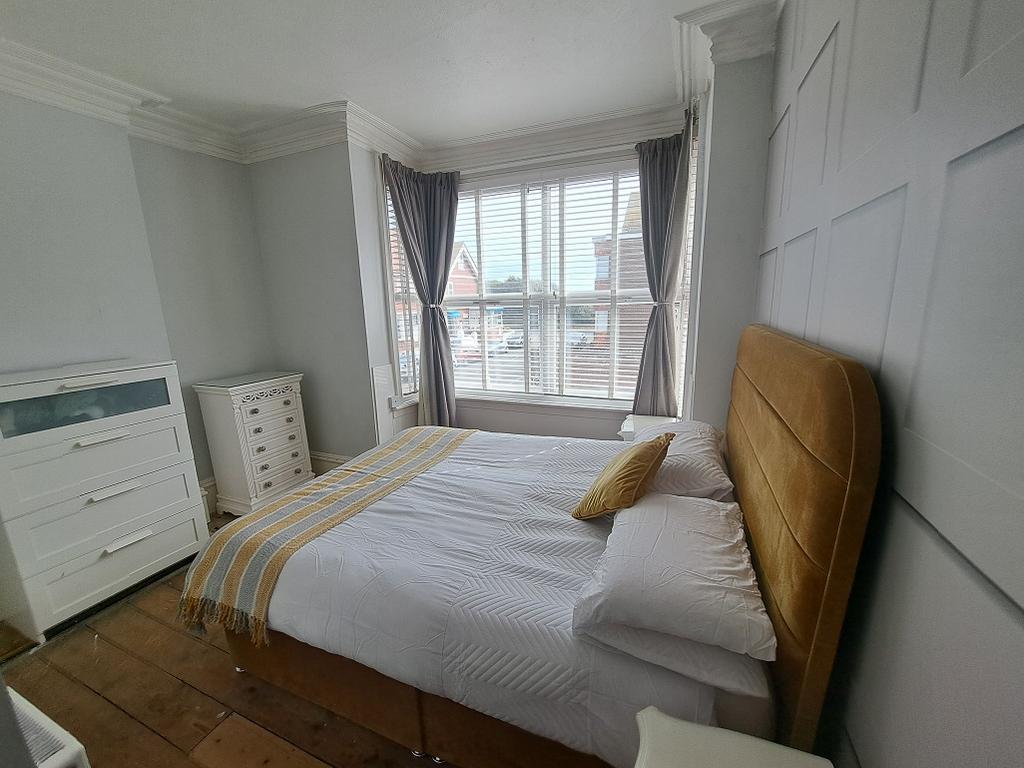 Ornate coving. Radiator. TV point. Wood floorboards. Wide triple aspect square bay with large UPVC double glazed windows.