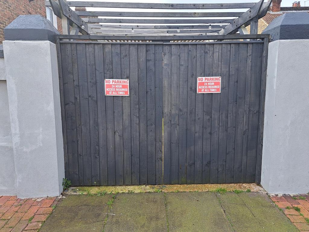 Located within the rear garden. Double gates at the side with access from Halton Road.