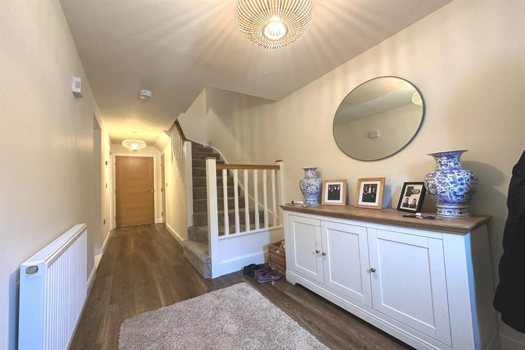 An immaculately presented executive Five bedroom End Town House situated on the quiet and leafy Stanneylands development constructed by David Wilson Homes. This impressive property is situated within a semi rural location being close to the Carrs Country Park, the River Bollin, Quarry Bank Mill and Styal golf club. Wilmslow town centre is a short drive away offering a wide choice of bars, restaurants and shopping facilities. The property has an open aspect to the front with tree lined and undisturbed countryside views, which can be appreciated from the properties balconies. In brief the property opens into a spacious hallway with access to the integral garage. The hallway leads into the impressive contemporary kitchen diner, with integrated appliances and french doors to the rear of the kitchen that open out to a lawned garden. There is also a downstairs cloakroom and understairs storage to the ground floor. On the first floor there is a spacious living room which opens up onto a Juliet balcony and has a feature fireplace. A double bedroom and the family bathroom with a shower over the bath complete the first floor accommodation. On the top floor there is the impressive principal bedroom suite, complete with en suite shower room and balcony. Directly next to the principal bedroom is a third double bedroom fitted with a skylight and electric blind. The top floor also has two other bedrooms. Externally to the rear of the property is the enclosed rear garden with paved patio area and lawn. To the front of the property, there is a tarmac driveway that offers off road parking.