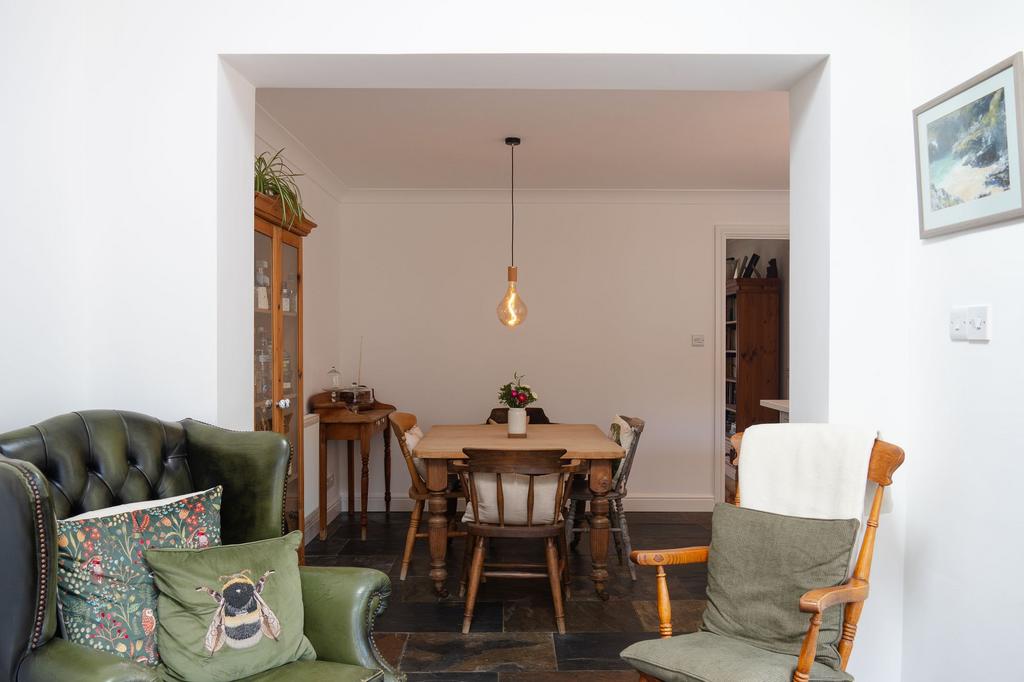 Open to the kitchen diner this extended sitting room with a gorgeous vaulted ceiling, 'Velux' window, with continued stone tiled flooring, double glazed window to the left elevation and double glazed patio doors to the rear.