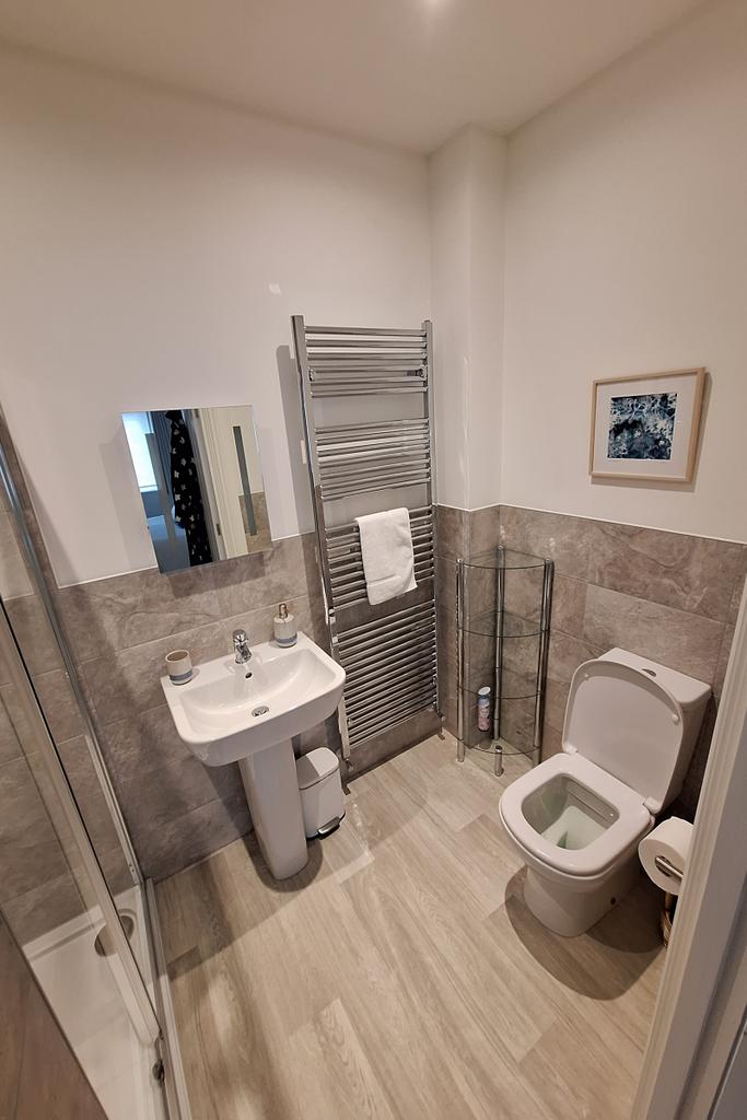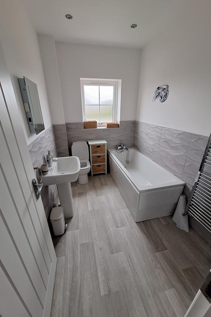 The family bathroom has a bath and separate shower cubicle