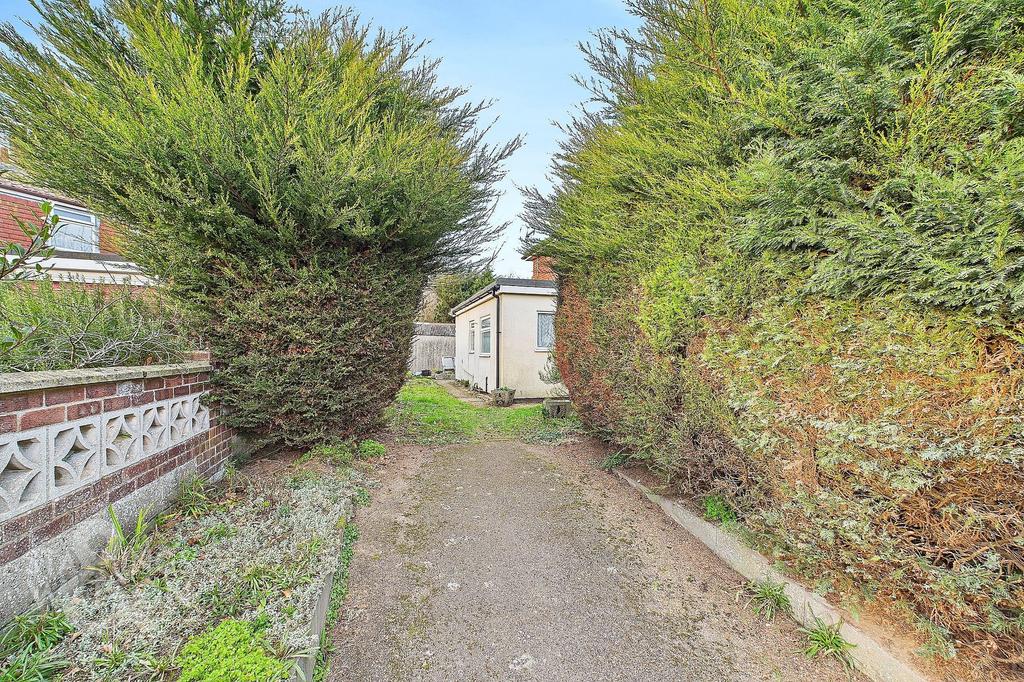The property can be accessed through an opening off a quiet street. Tall privacy-giving hedges running either side off a tarmac driveway switches to lawn allowing the possibility for a larger driveway to be added over time for parking of multiple vehicles. The main door comes to your right while access for the rear garden comes to the side of the home also.