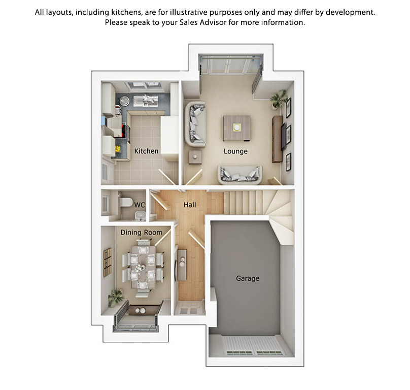 The Denholme is a spacious three bedroom detached home, that is over 1,000 sq ft, with integral single garage.