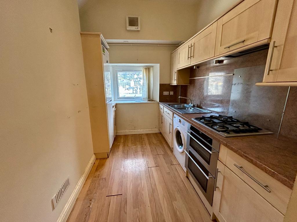 Window to rear, fully fitted kitchen to include 4x wall cupboards, 4 x base units under marble effect worktops, 11/4 stainless sink and drainer, marble effect panel splash-back, gas hob, electric oven with extractor fan above, space for fridge/freezer, space for washing machine, Worcester boiler, laminate flooring.