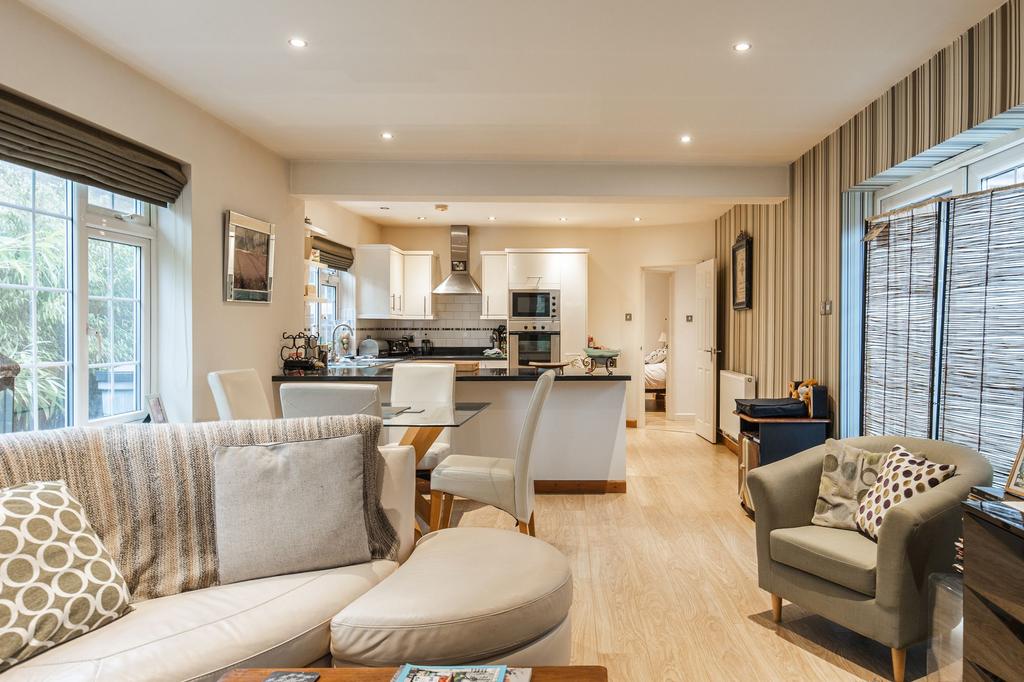 Outside, a private driveway leads to a double garage, offering ample parking and storage options. The enclosed rear garden provides a tranquil outdoor space, perfect for summer barbecues, gardening, or simply unwinding in your own sanctuary.