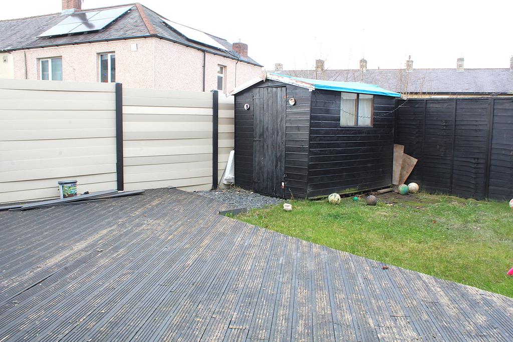 To the rear is an enclosed garden area with lawned area, decking and garden shed.
