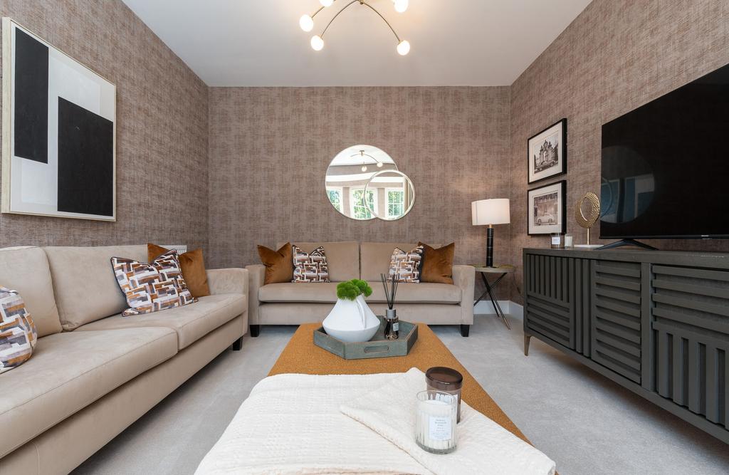 At the front of the house is a lovely living room with full height windows letting in lots of light and providing the perfect retreat from the hustle and bustle of family life.