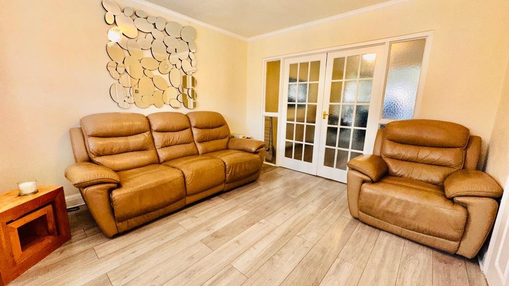 Spacious Lounge painted in a neutral colour with natural light entering from the kitchen window, comprising laminate flooring , radiator with covers and double glazed.