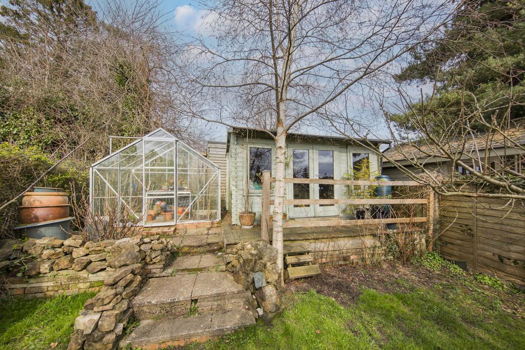 OUTSIDE: To the front is a tarmac driveway providing off road parking and shallow steps rising to main entrance. The remainder of the garden is predominately laid to lawn with Sussex stone borders and hedge boundaires. To the side of the property a wooden gate provides side access via a brick paved pathway, high level sleeper style borders and an open log store. The rear garden benefits from a brick paved patio adjacent to the property, ideally suited for outside seating and entertaining. The remainder of the garden is principally laid to lawn with a small pond and incorporates a variety of mature and established planting to include a beautiful flowering pink cherry tree, silver birch and a selection of fruit trees. To the rear of the garden is a greenhouse and a summerhouse with plenty of room for storage. In addition is a kitchen garden and a large workshop with electric strip lighting and areas of shelving.