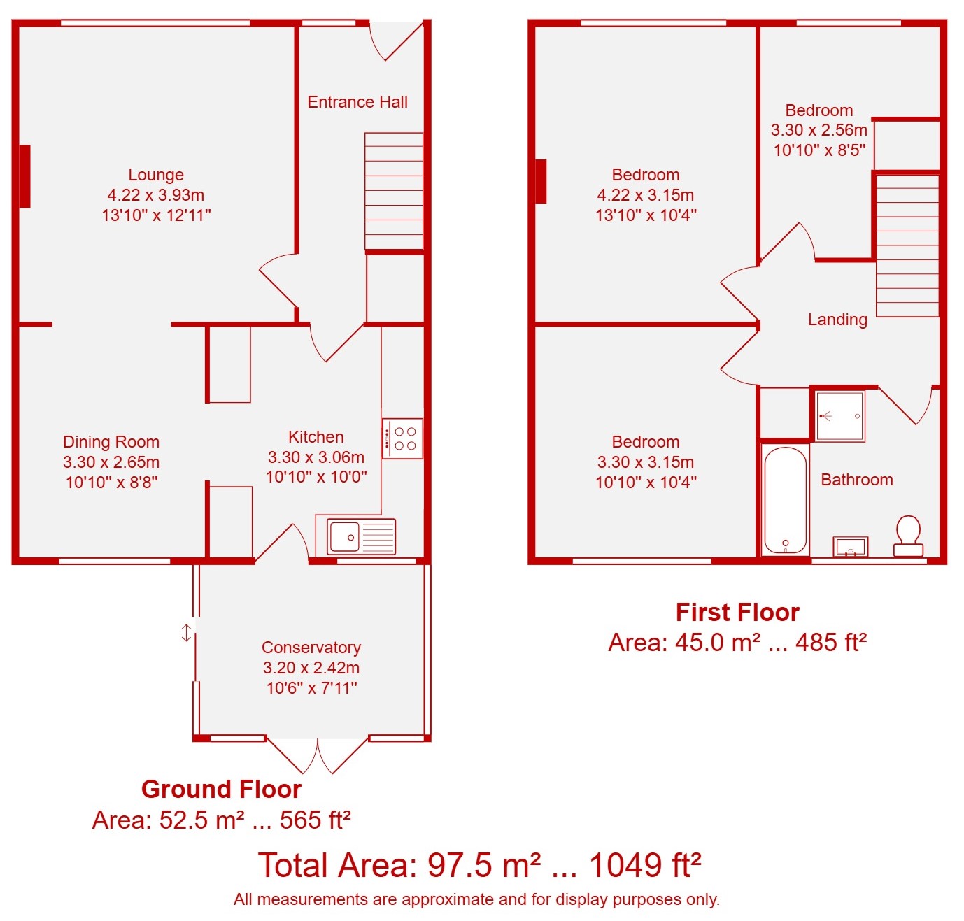 FIRST FLOOR: Three Bedrooms * Spacious Family Bathroom with white suite and shower cubicle * Landing.