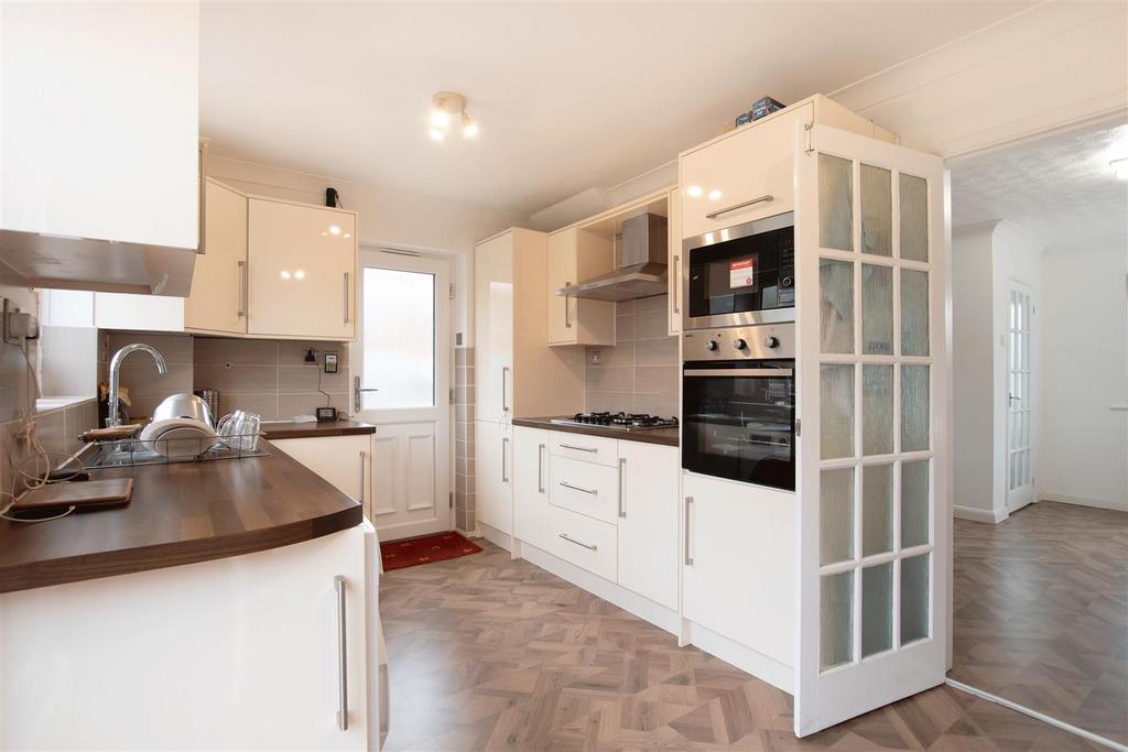 VERY WELL PRESENTED! This smart 3 bedroom semi-detached home with single garage and driveway is located in small and quiet cul-de-sac in the popular "Gleneagles" area of Wellingborough. This great family home has been well cared for and greatly improved by the current owner in recent years and has recently had all new UPVC facias boards and guttering fitted. Further benefits include: ground floor WC, UPVC double glazed windows & doors, smart modern kitchen with integrated cooking appliances, gas radiator central heating with newly fitted radiators, stylish refitted bathroom, quality floor coverings & interior decor throughout. The accommodation on offer is as follows: Entrance hall, cloakroom/WC, lounge, kitchen/diner and 3 bedrooms and bathroom on the first floor. To the front is an open plan lawn garden and a long driveway with timber carport and single garage. To the rear is a pleasant family garden which is laid to lawn with a patio area, access door in to the single garage and secure gated side access. This really is a great home in a great location and it must be viewed to appreciate everything it has to offer.