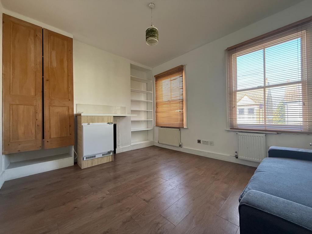 This fully furnished bedsit offers a comfortable and convenient living space. It features an integrated wardrobe and shelving for ample storage, along with a private kitchenette area that includes a fridge freezer and space for a cooker, allowing for independent meal preparation. Large windows flood the room with natural light, creating a bright and welcoming atmosphere.