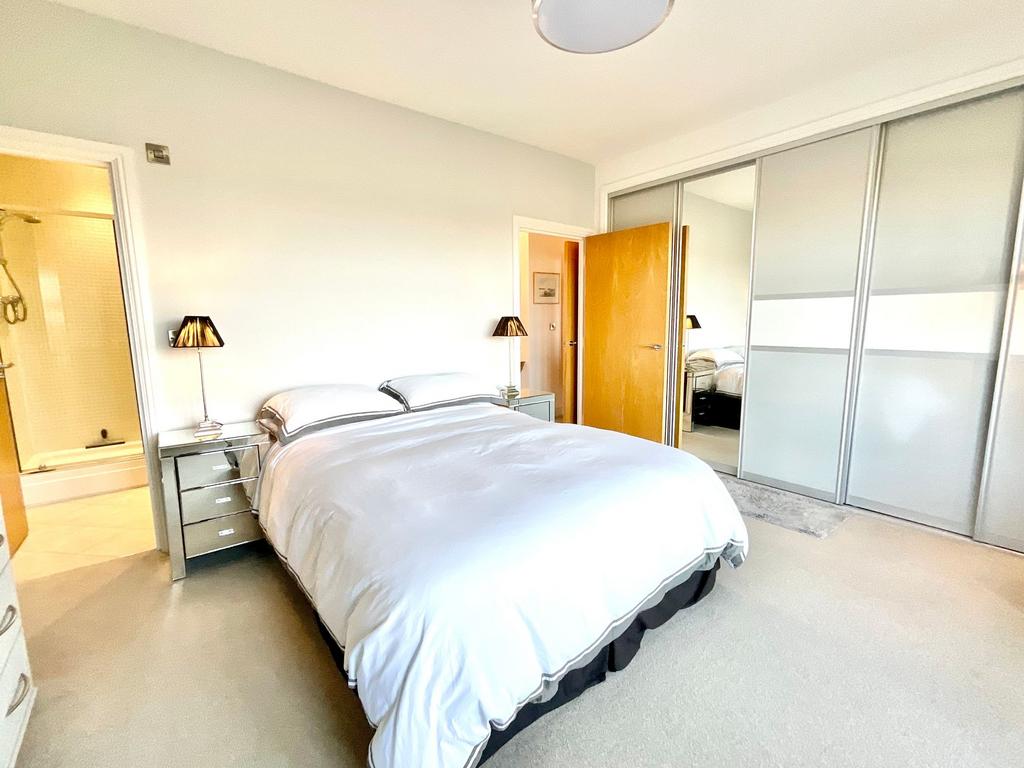 The master bedroom is a true retreat, complete with its own private balcony, a luxurious ensuite bathroom, and ample built-in storage. Two further well-appointed bedrooms offer flexibility for family, guests, or a home office, and they are served by a contemporary family bathroom fitted with high-quality fixtures and fittings.
