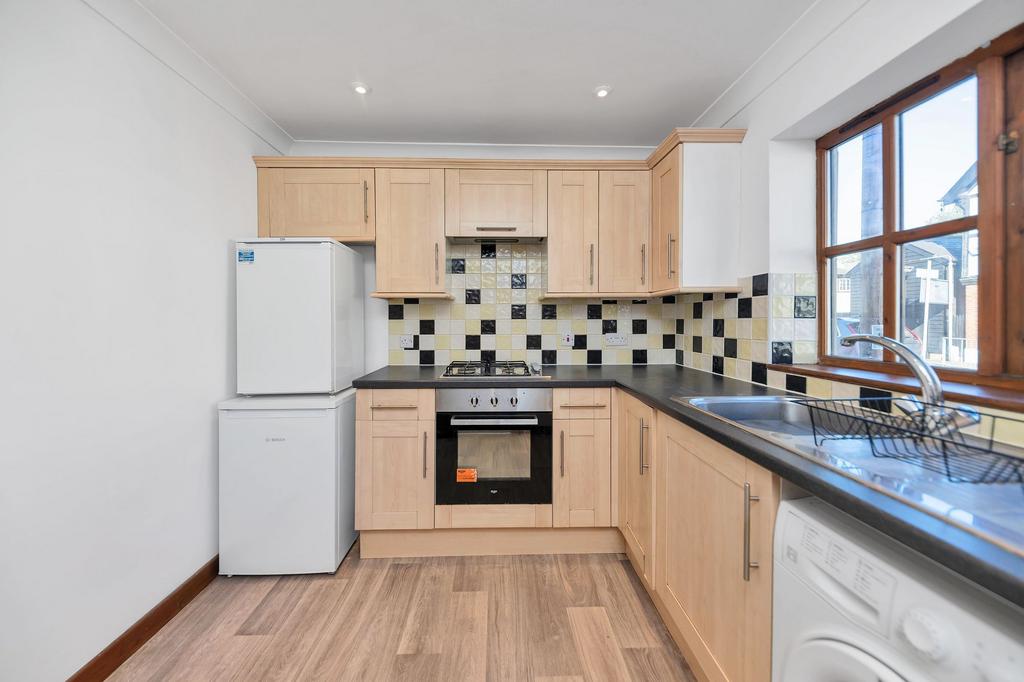 The kitchen is a very nice size, enjoying a window to a front aspect, a range of base and wall units, laminate worktops, wood flooring, inset lighting, an integrated oven, gas hob and extractor fan, and space for a washing machine, fridge/freezer, storage furniture and other small kitchen appliances.
