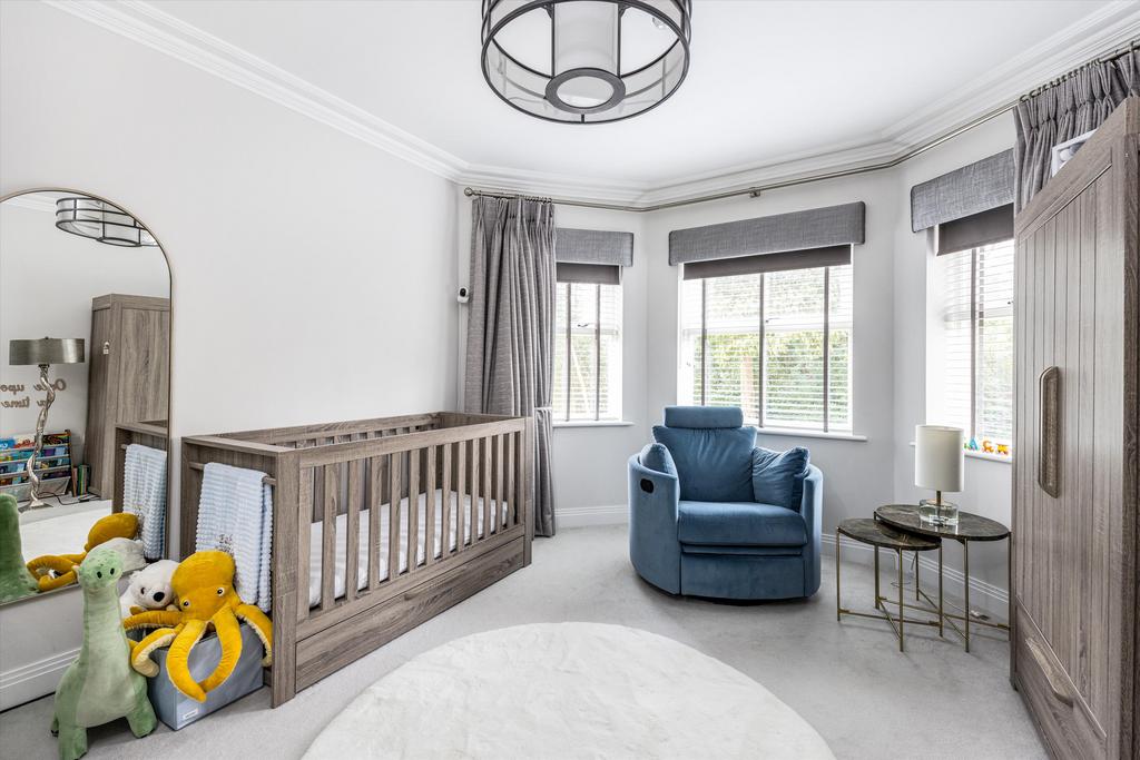 The ground floor features a spacious and welcoming reception hall with storage cupboards, a guest cloakroom and access to the garage. There is an impressive drawing room with a feature fireplace and a formal dining room, both of which have ceiling sound systems and French doors with Juliette balconies overlooking the rear garden. The study is found to the front of the house providing a tranquil workspace.