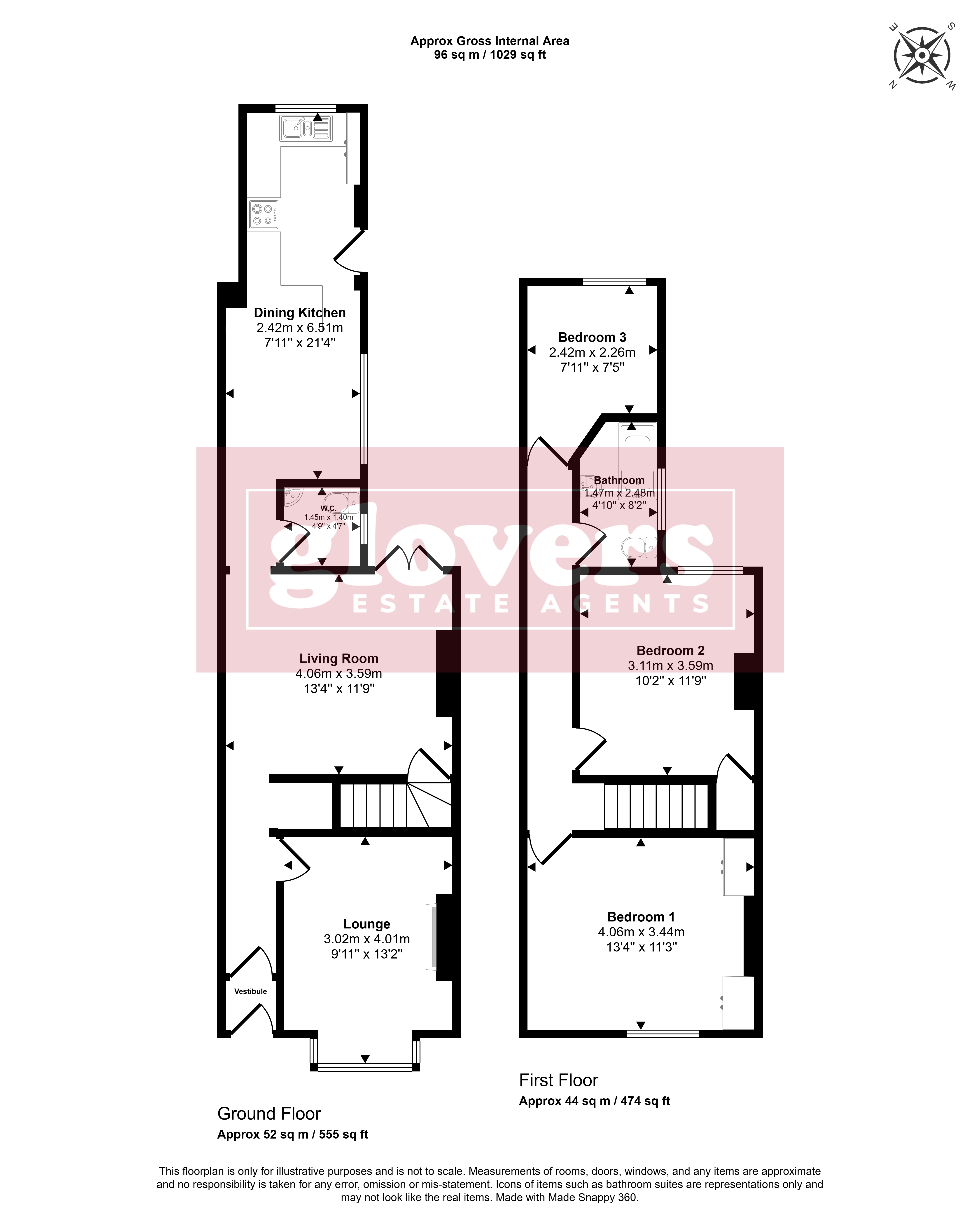 1) These sale’ particulars are for guidance only, and Glovers Estate Agents cannot guarantee their complete accuracy, nor do the particulars constitute a contract or part of a contract. 2) A purchaser must obtain verification on any point of importance or concern. 3) Any measurements given are approximate, and purchasers should verify the measurements for themselves especially before ordering furniture or floor coverings. 4) Glovers Estate Agents have not tested any apparatus, equipment, fixtures and fittings or services and so cannot verify that they are in working order or fit for the purpose; purchasers are advised to obtain verification from their solicitor or surveyor. 5) References to the tenure of a property are based on information provided by the seller; we will not have seen the title documents; purchasers must therefore obtain verification on tenure from their solicitor. 6) Items shown in photographs are not included in the sale unless specifically mentioned within the sale’s particulars; certain items may be available by separate negotiation. 7) Purchasers must check the availability of the property before travelling to see it, and before making an appointment to view.