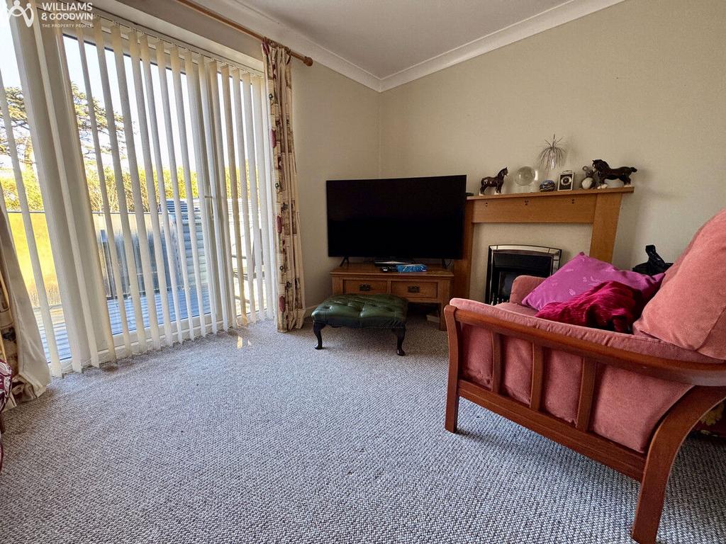 uPVC double glazed French doors to front with two smaller uPVC double glazed windows surrounding, gas fireplace to side, radiator to side.