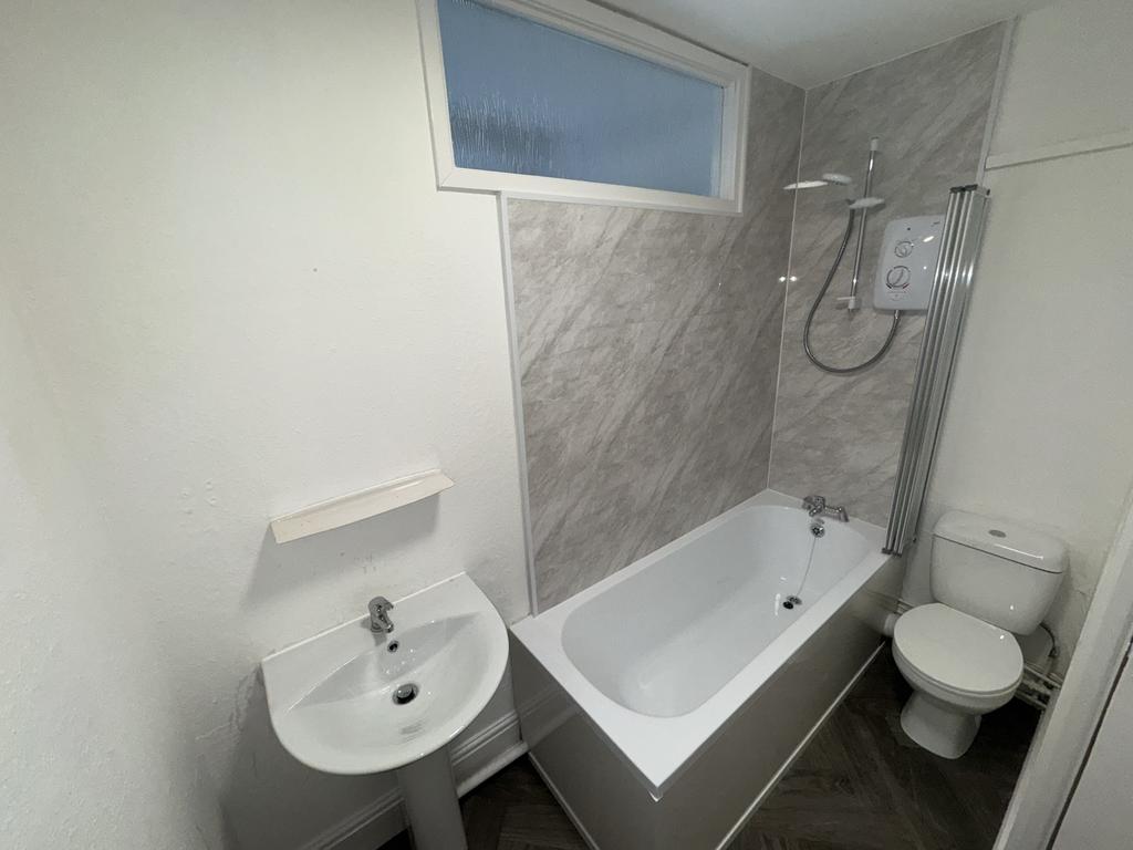 The white bathroom suite includes a shower for your convenience. Please note that this property is available for short term lease only and a guarantor is required.